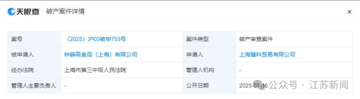 风险信息显示,该公司现存多条被执行人、限制消费令、失信被执行人(老赖)及终本案件信息。此前,钟薛高旗下钟茂(上海)食品科技有限公司、盘箸有喜(上海)生物科技有限公司均被申请破产审查。
